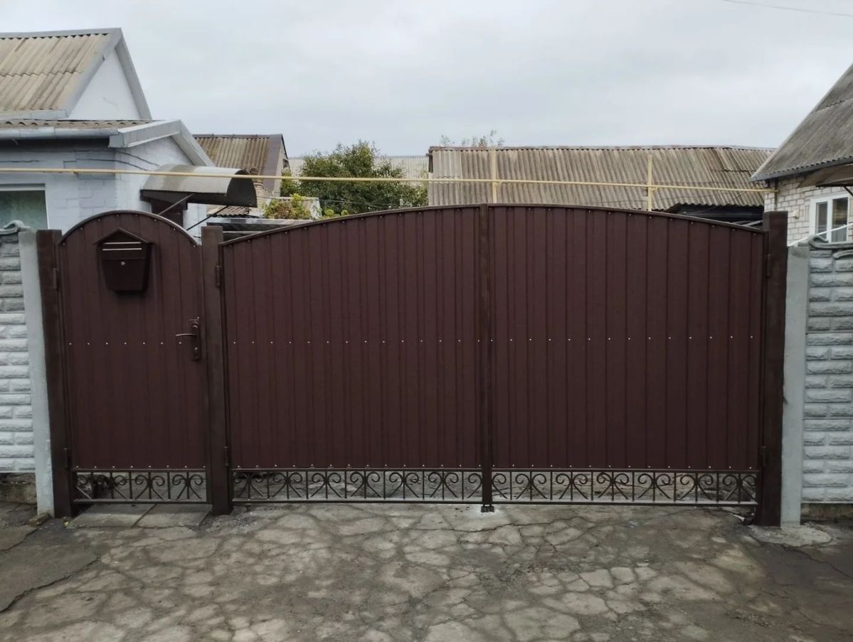 Ворота.Паркани ковані, зварені, із профлисту. Навіс.